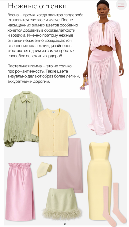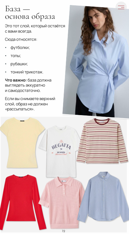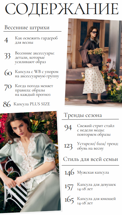 Основная часть журнала - это стиль, который вы так любите — готовые образы, капсулы и практичные советы, чтобы чувствовать себя уверенно.