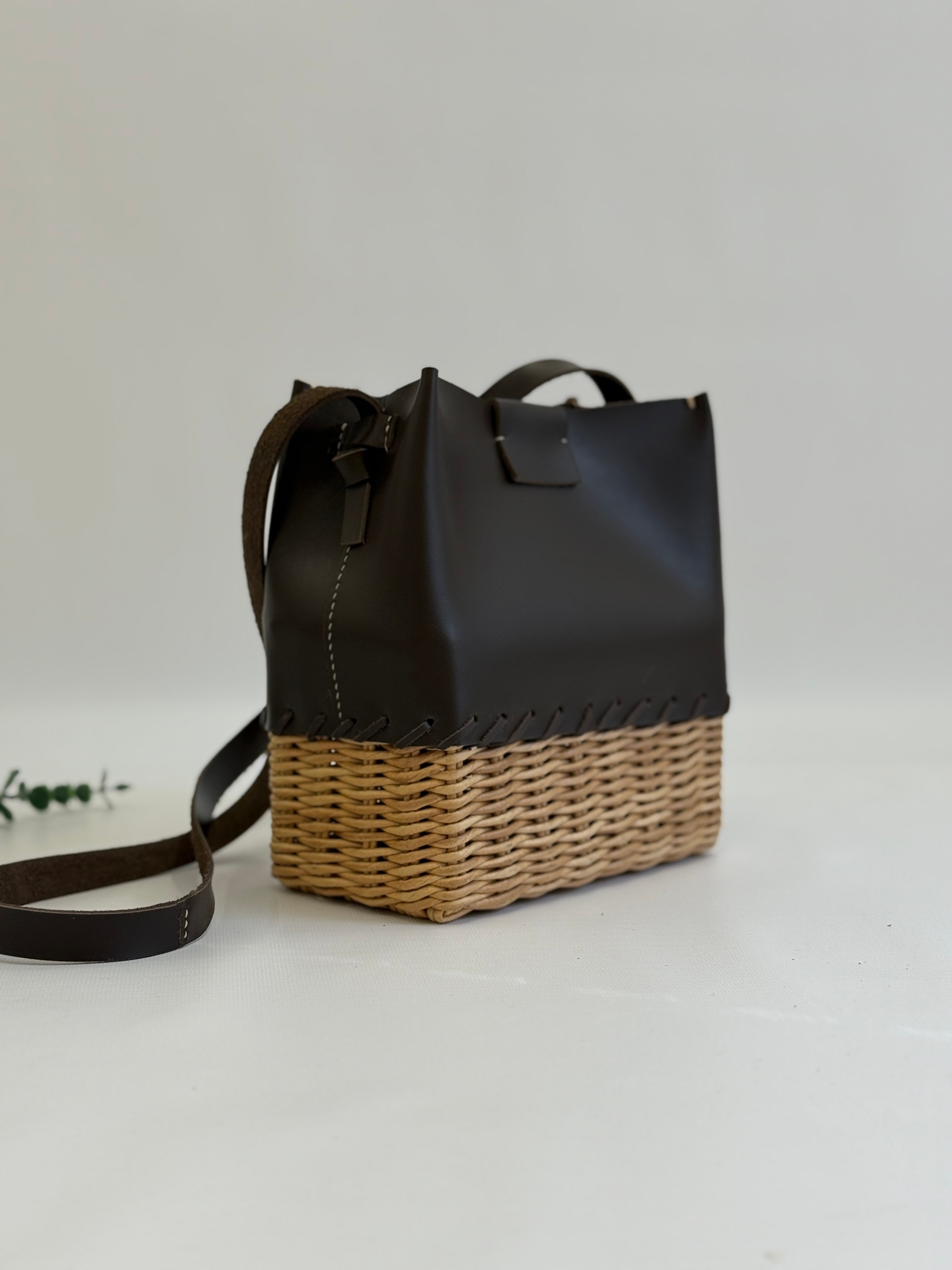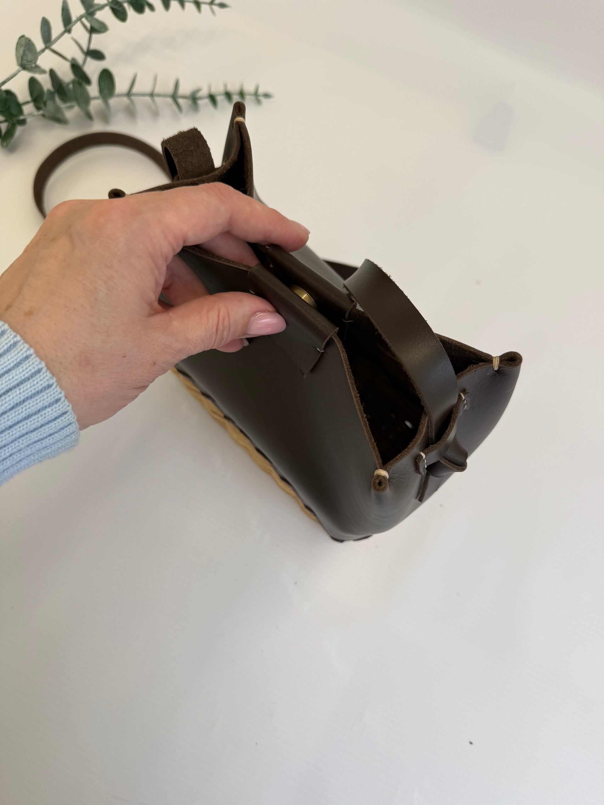 Это сумка из лозы с кожей, модель, которую мы недавно изготавливали в рамках закрытого марафона.