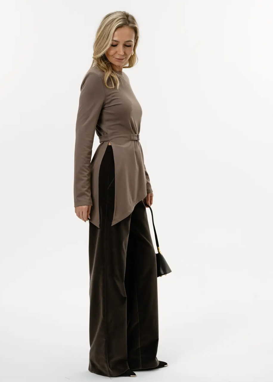 Трикотажный лонгслив приталенного силуэта, с ассиметричной линией низа.