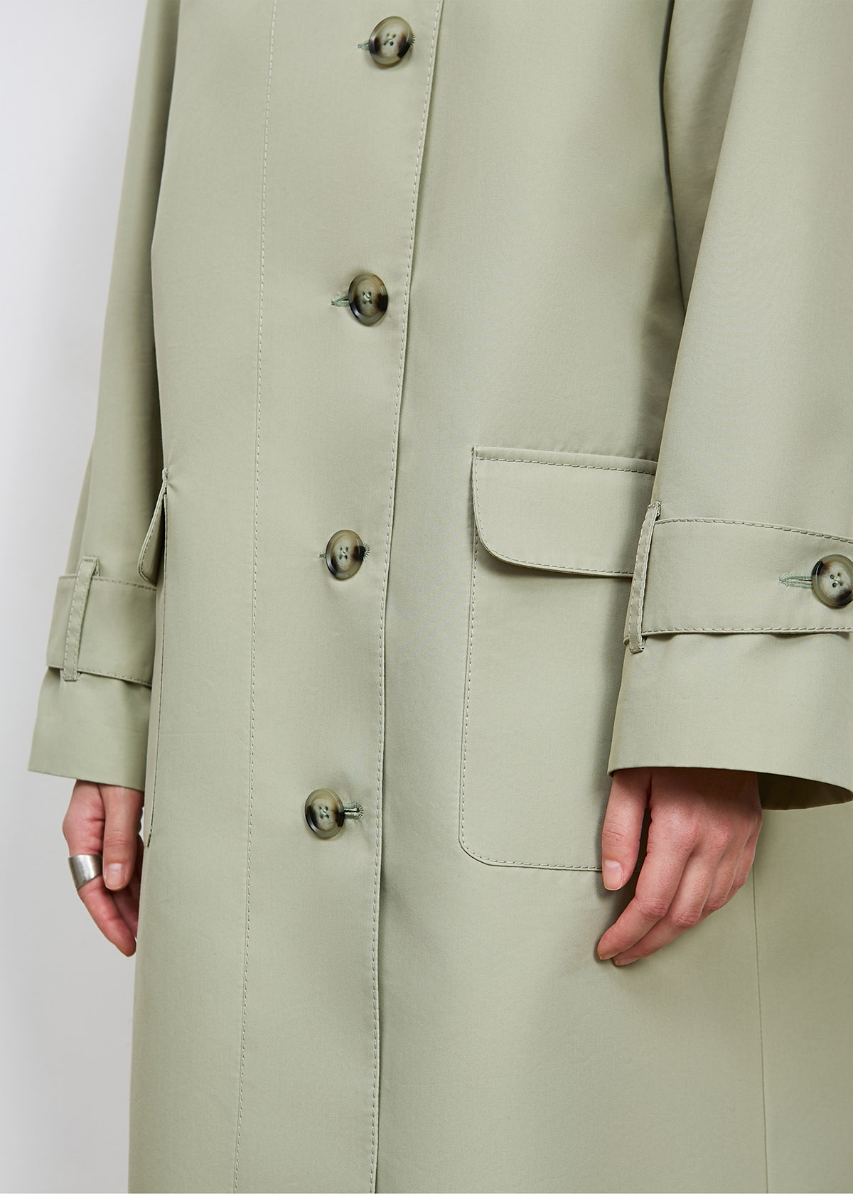 Тренч сшит из плотного хлопка с водоотталкивающей пропиткой, состав 60% хлопок, 40% полиэстер, плотность 270 гр/м².