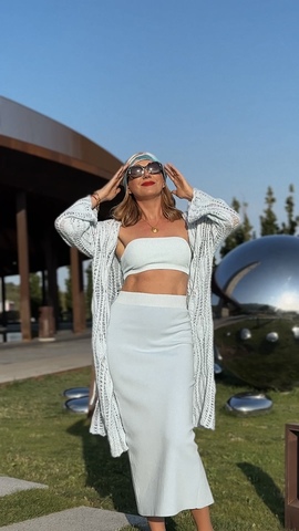 Спицы: № 6 для основного полотна и № 5-5,5 для шнура (пояса), на любой леске или без лески для вязания поворотными рядами.