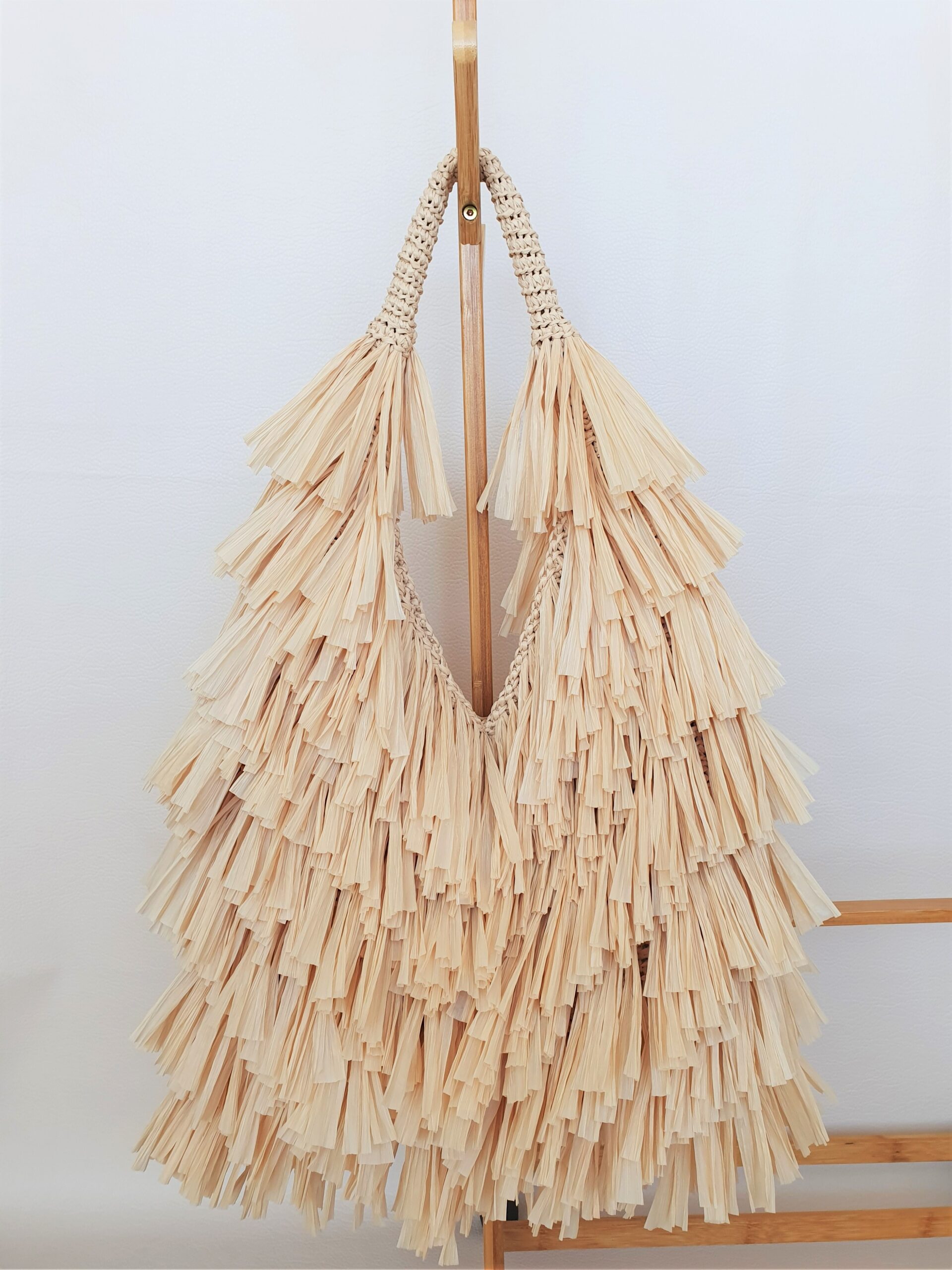 Для сумки вам понадобится: 300 грамм пряжи «Рафия» для сумки и 150 грамм для бахромы (Ispie, 250м/120г), крючок 4 мм, магнитная застежка.