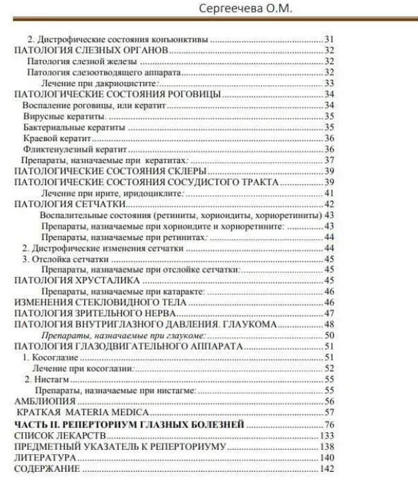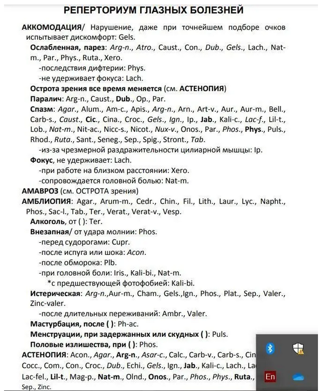 Дается краткая Materia Medica c акцентом на патологию глаз.