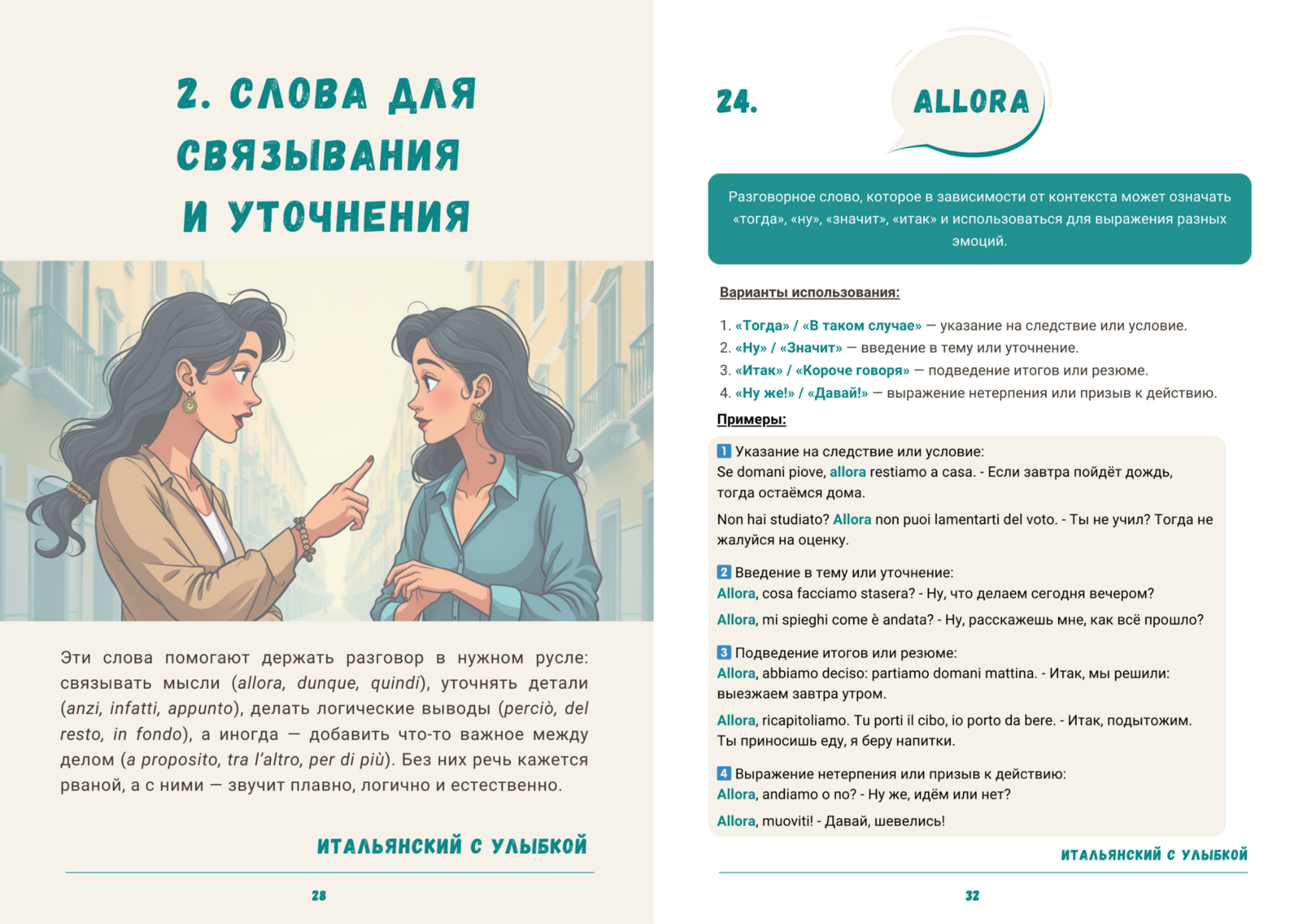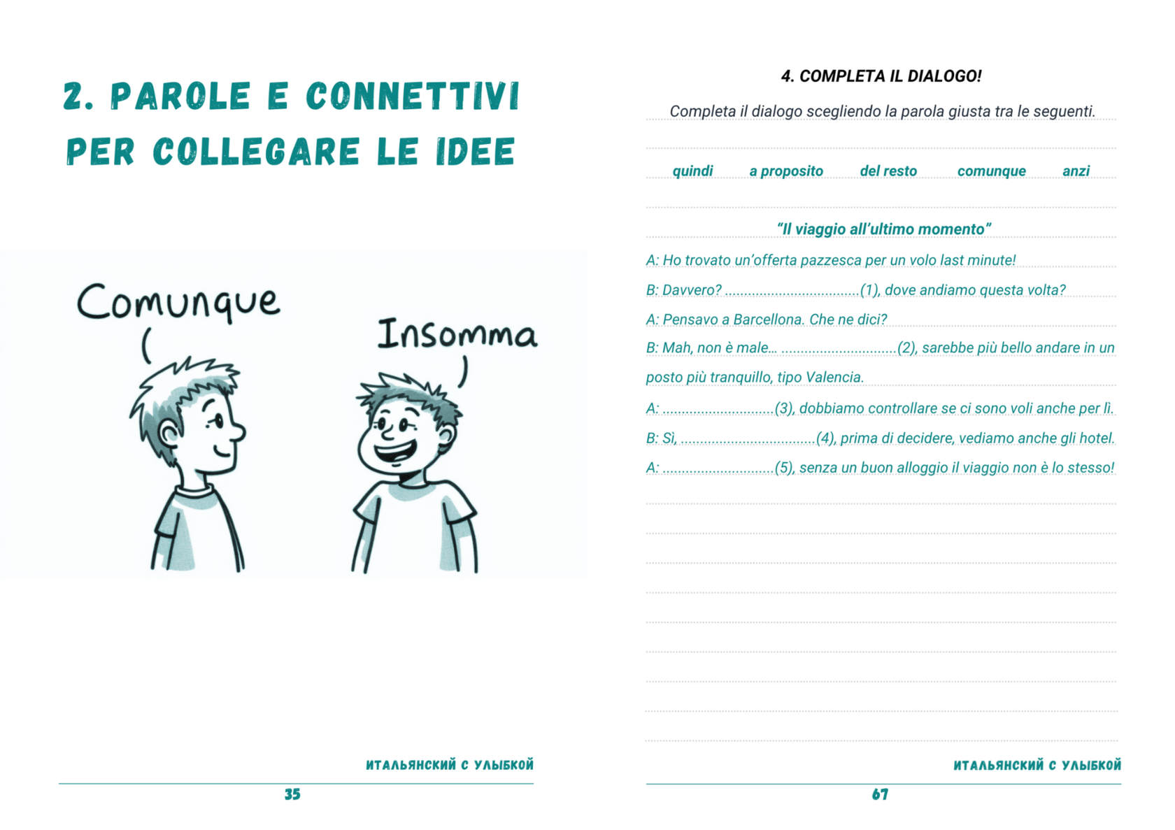 • научишься использовать слова-связки и сделаешь свою плавной и естественной как у настоящих итальянцев;