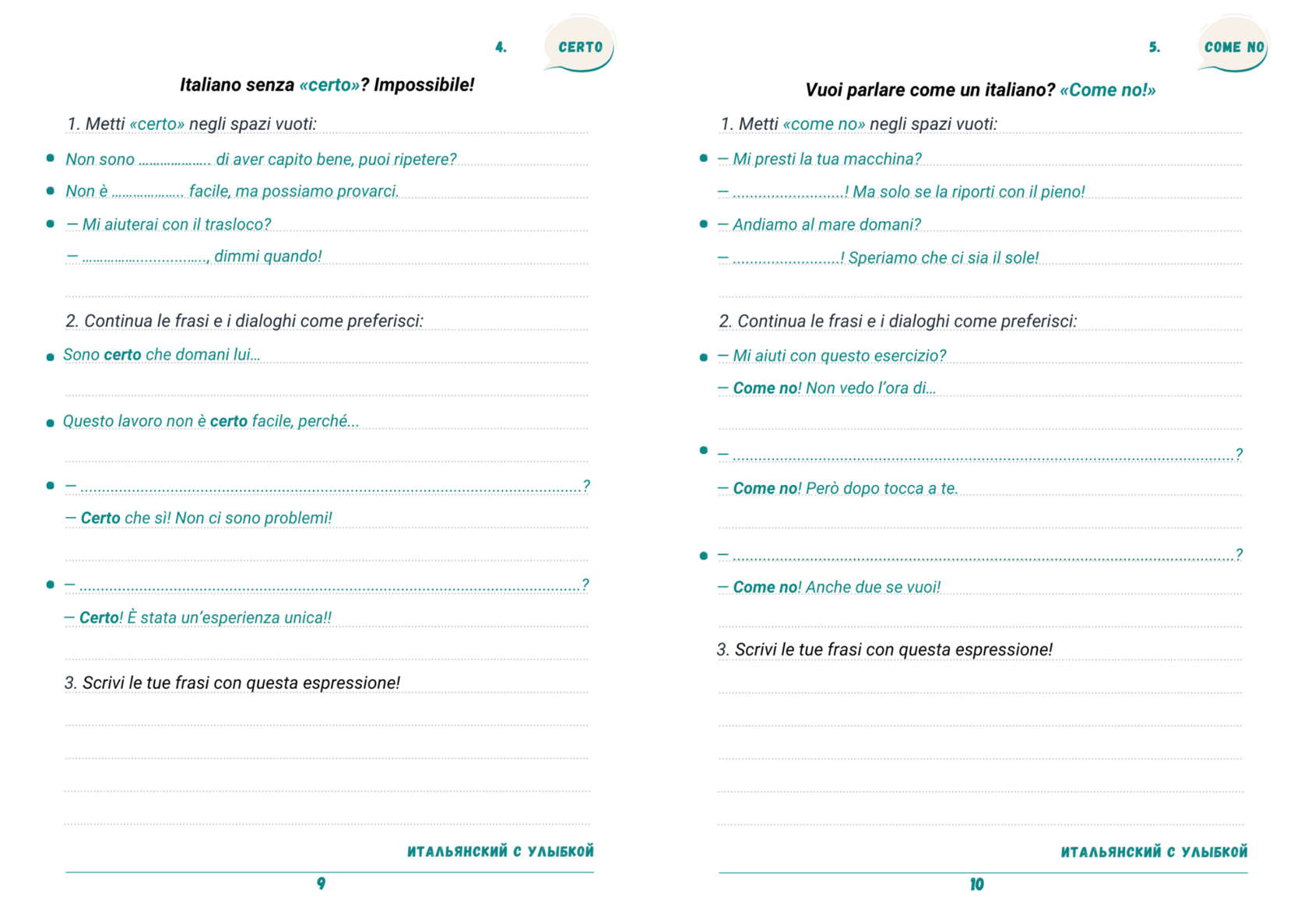 Закрепление слов на практике: Каждому выражению уделена целая страница для тренировки, где ты от души поупражняешься