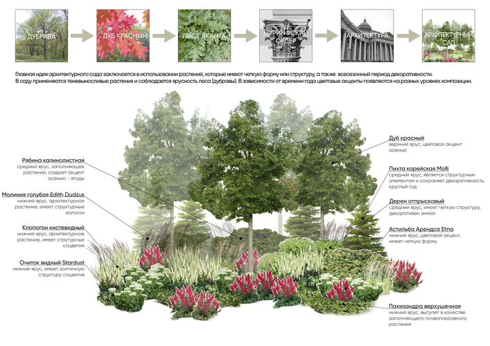 - Игра их текстур, форм и окраски позволяет получить наиболее интересные картинки, они же задают и цветовую гамму лесного сада