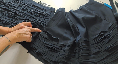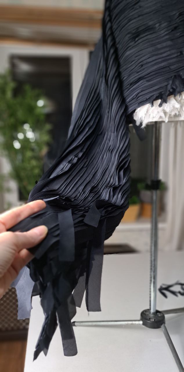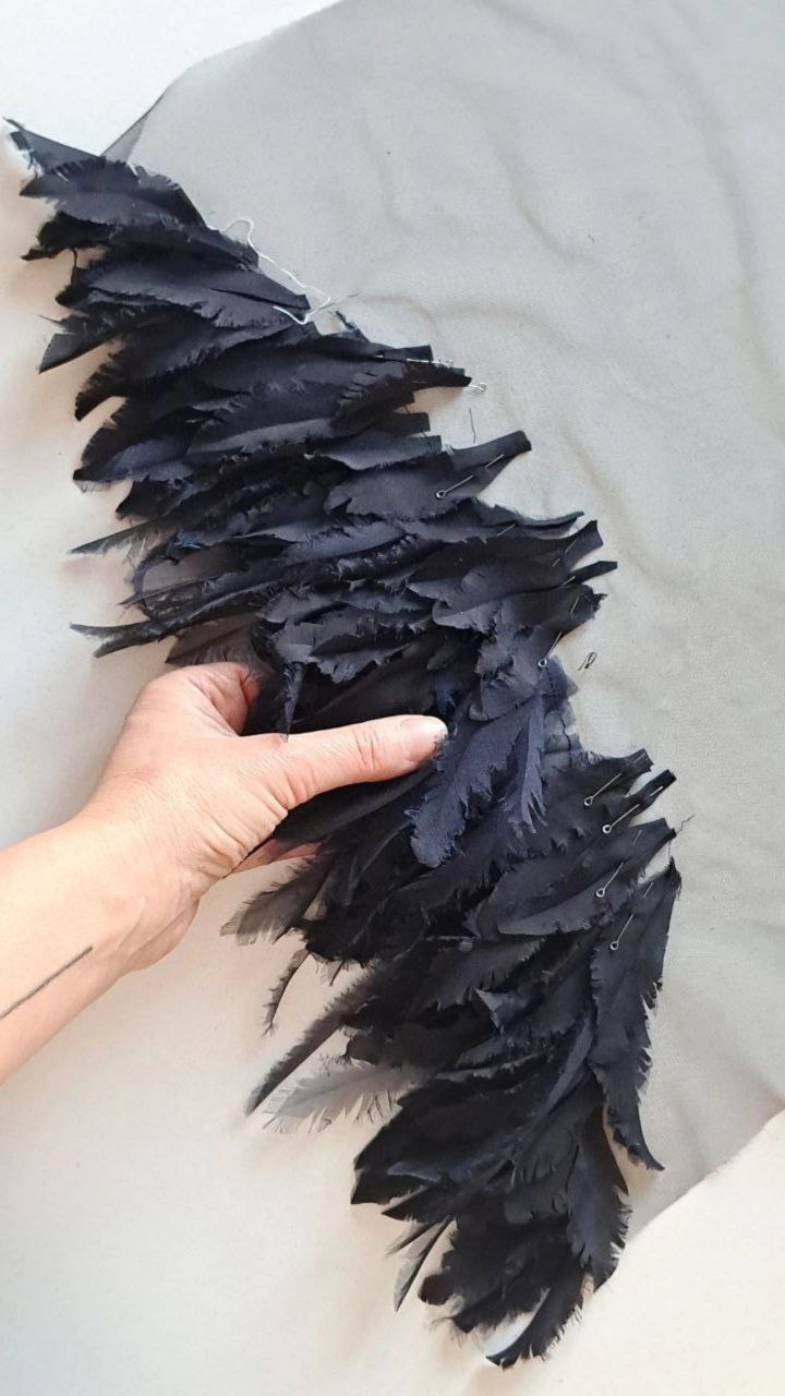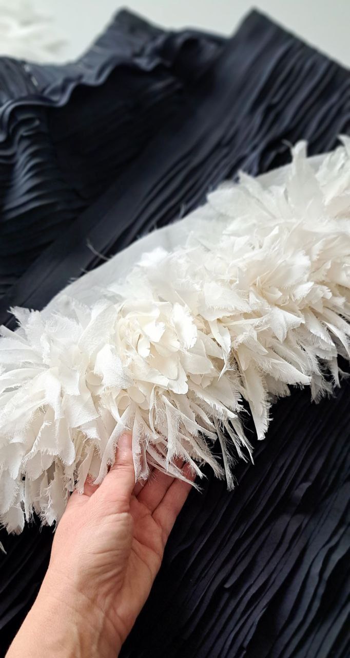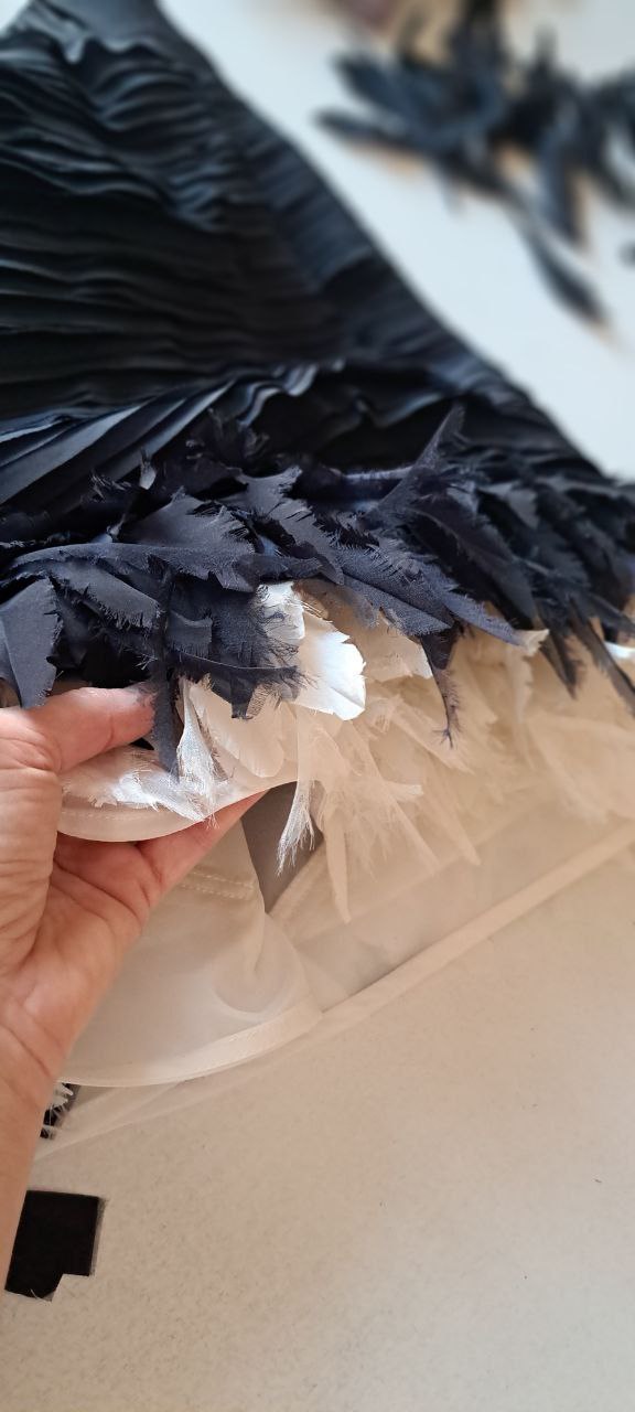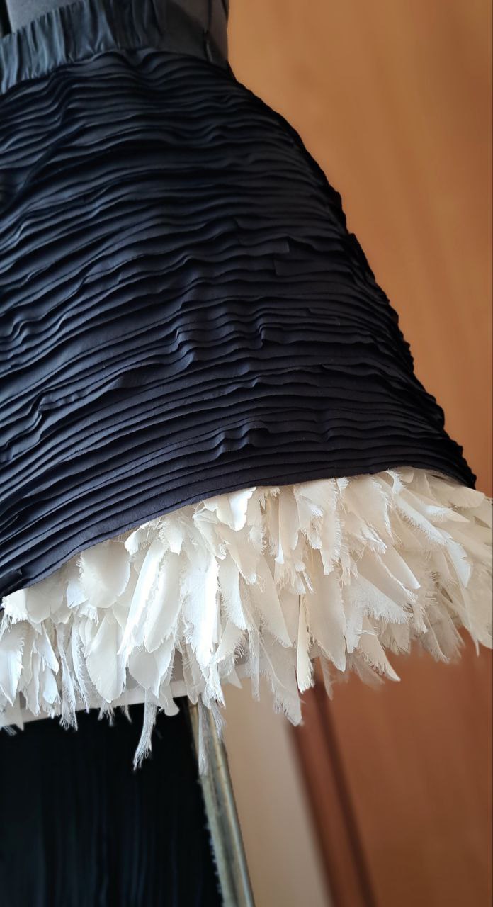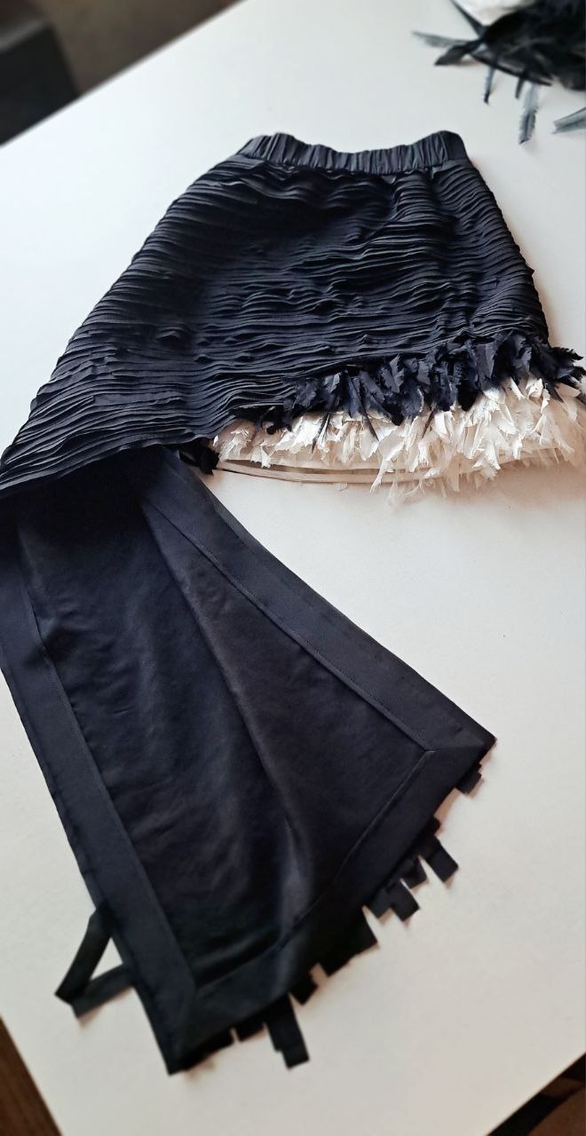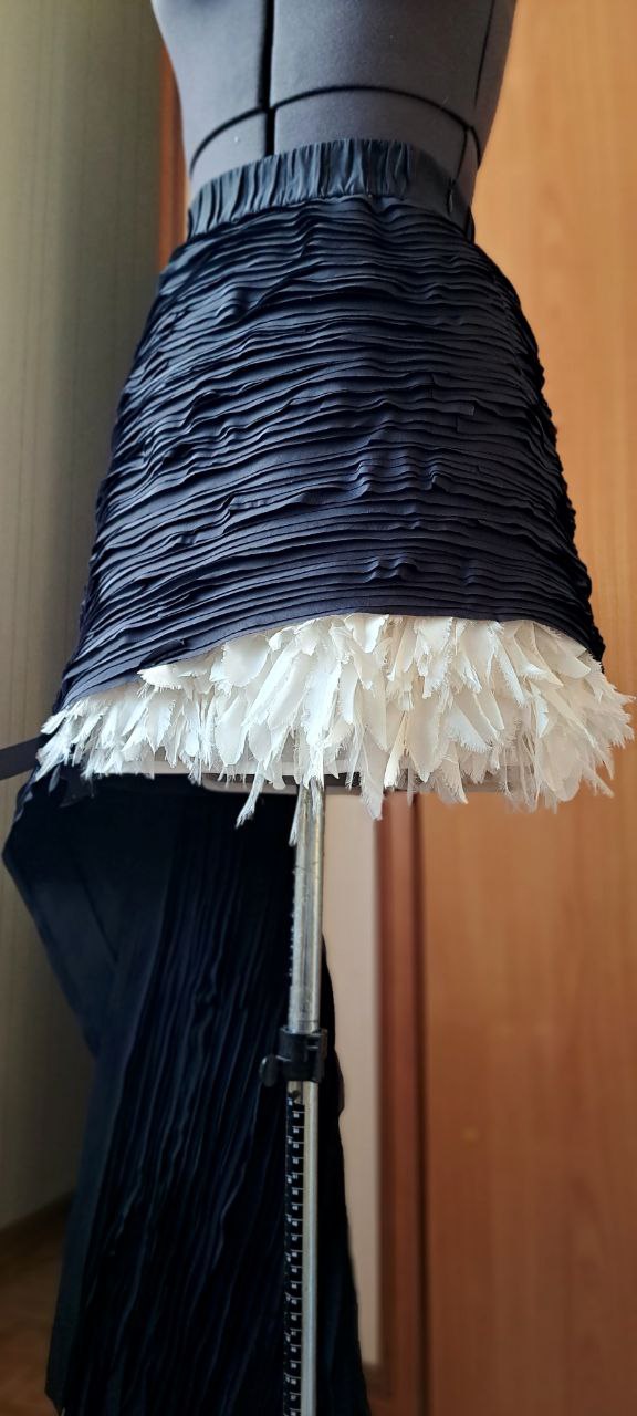 • декоративного оформления юбки ("слоистая" фактура и перышки из ткани)