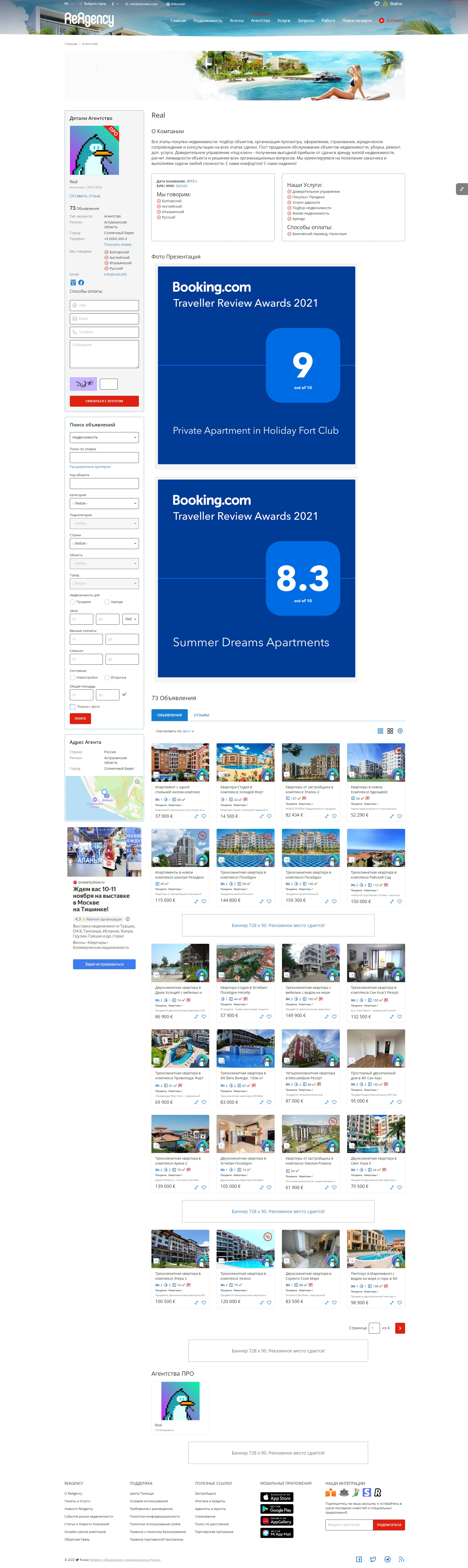 Данный шаблон идеально подходит для сайта агентства недвижимости так и для агрегатора сайта недвижимости.