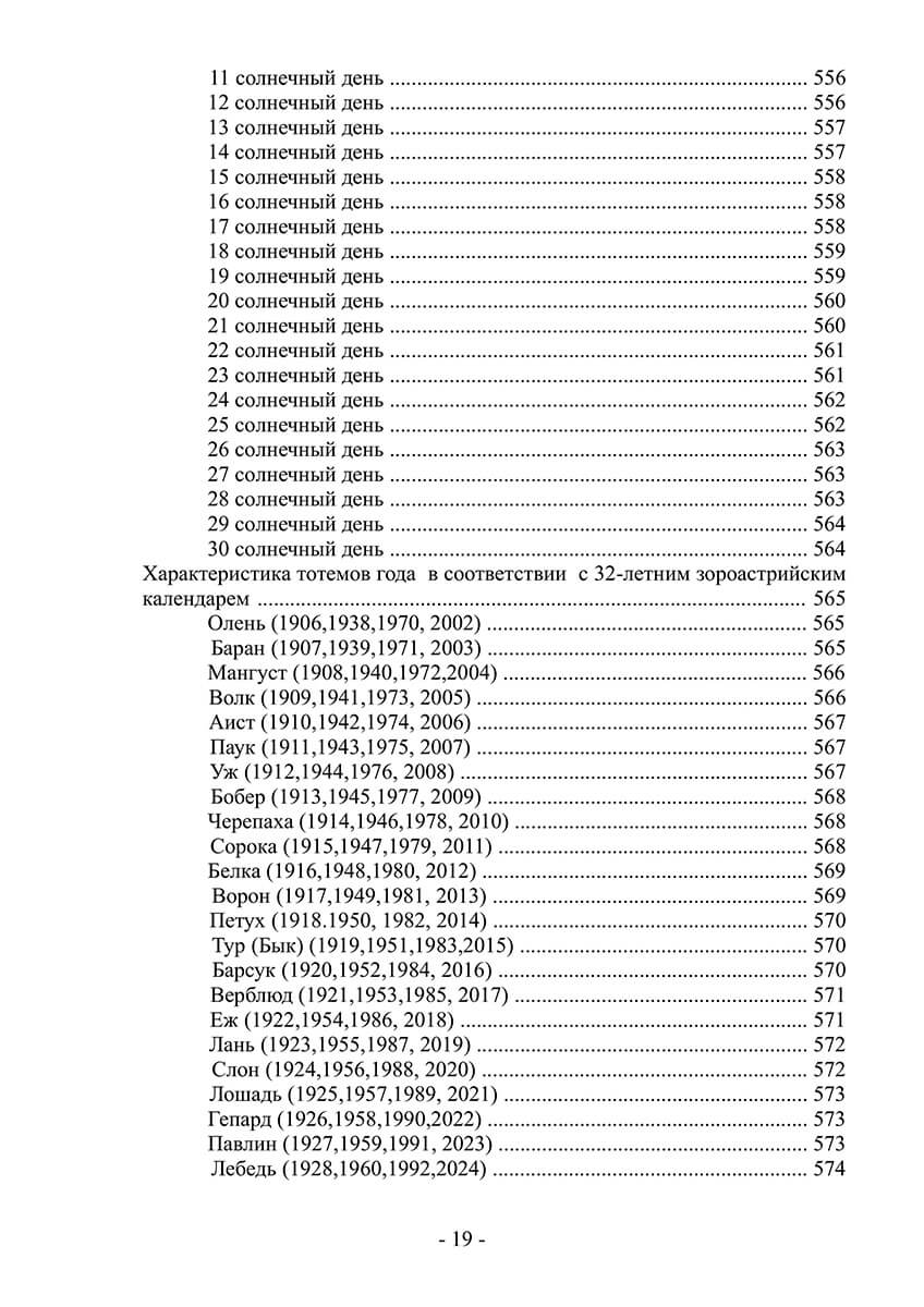 - Зороастрийский календарь как самостоятельный слой диагностики. 32-летний тотемный цикл, 30 солнечных и 30 лунных дней — это не экзотика, а верифицированный инструмент, который позволяет перепроверять и углублять выводы, сделанные по космограмме. Вы получаете готовые интерпретации всех календарных показателей с их привязкой к авестийской мифологии.