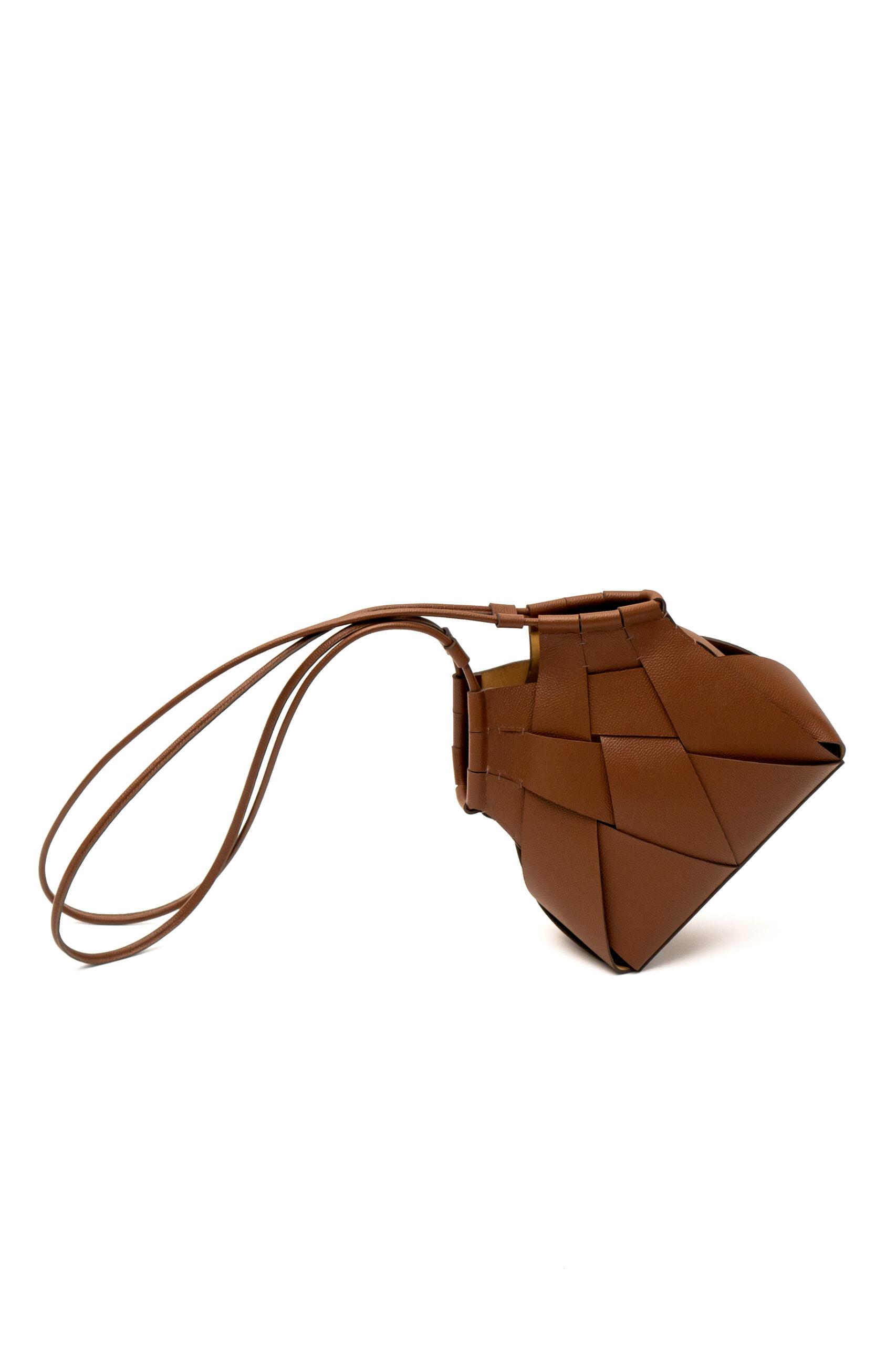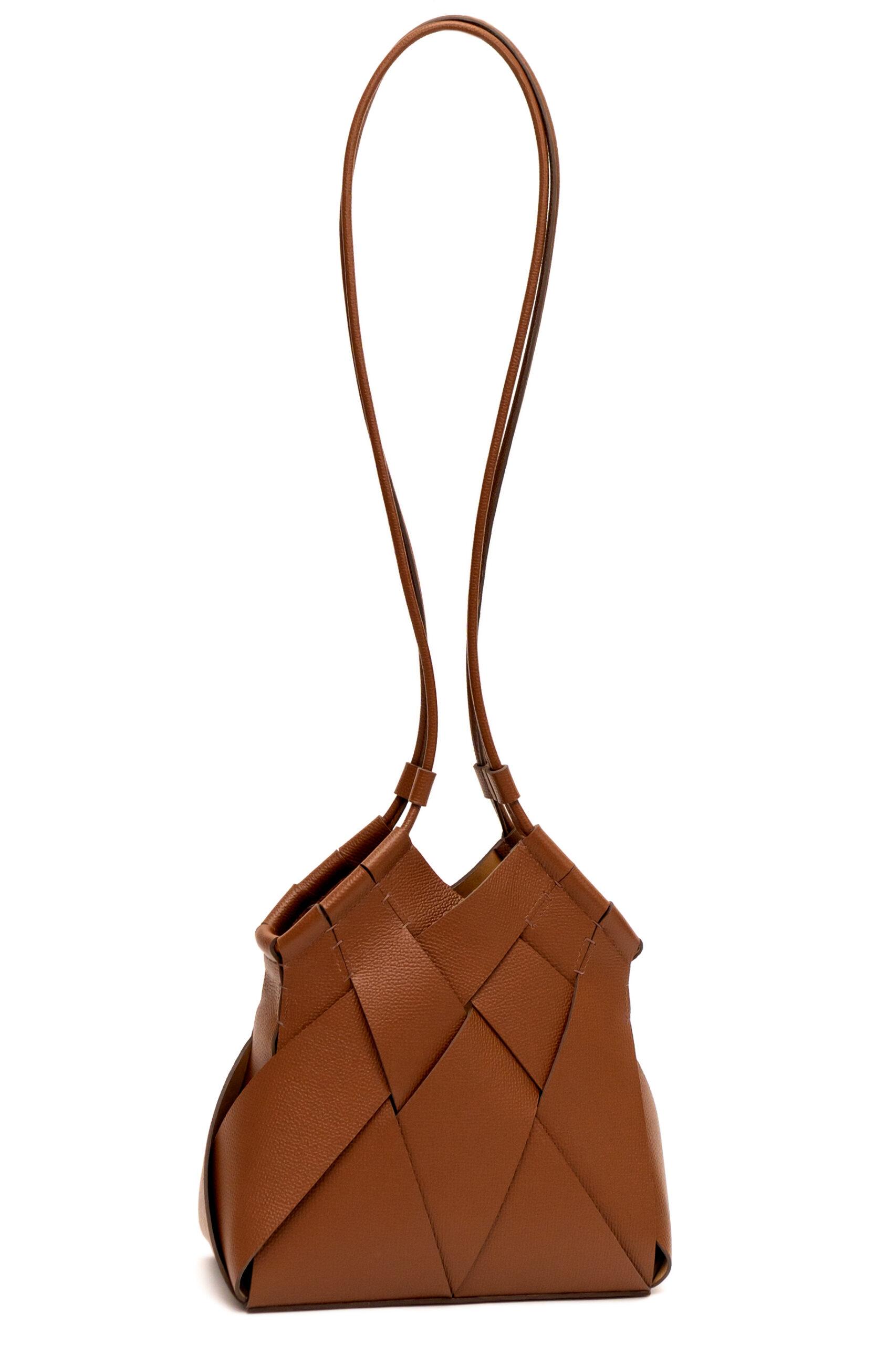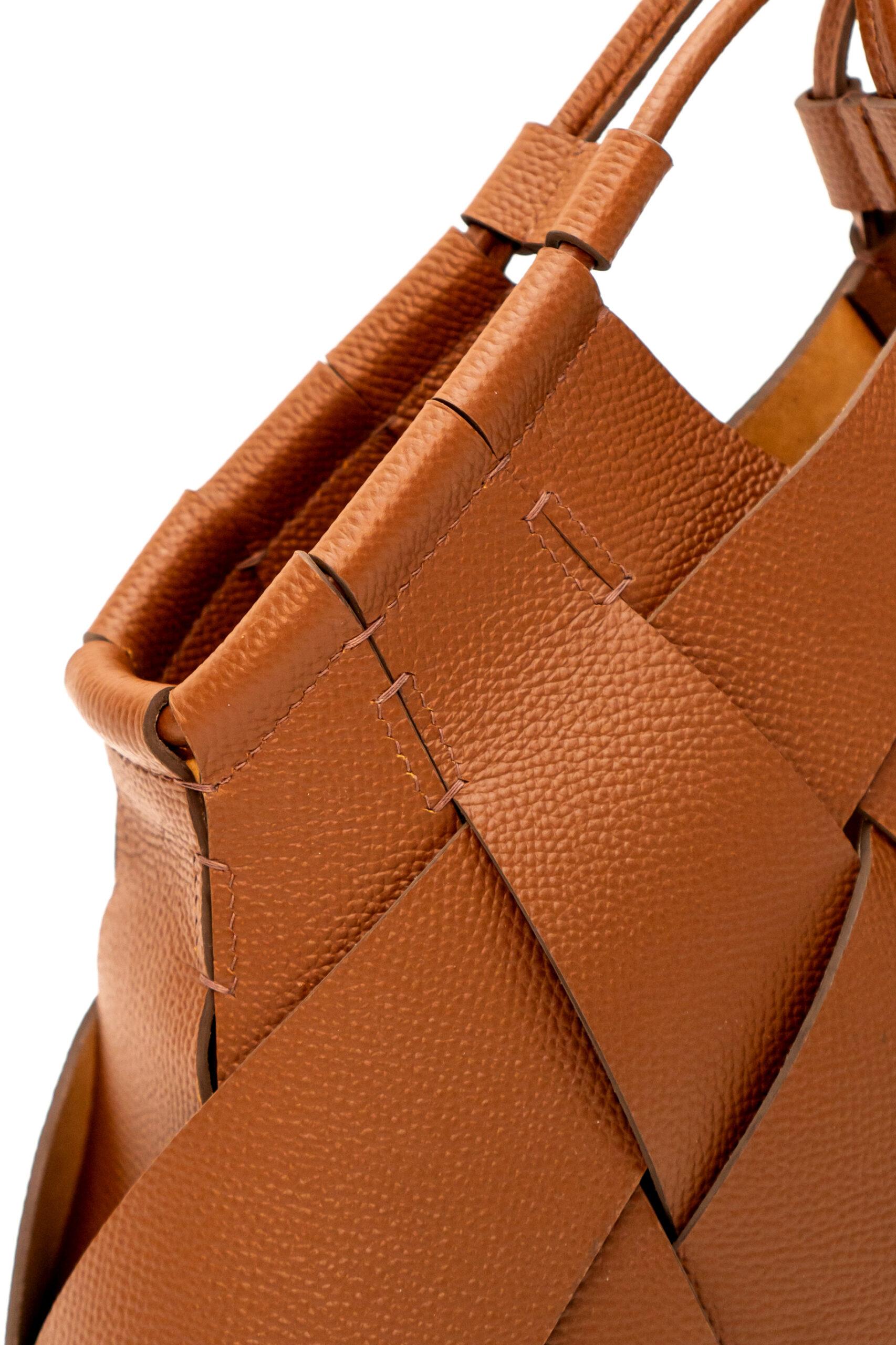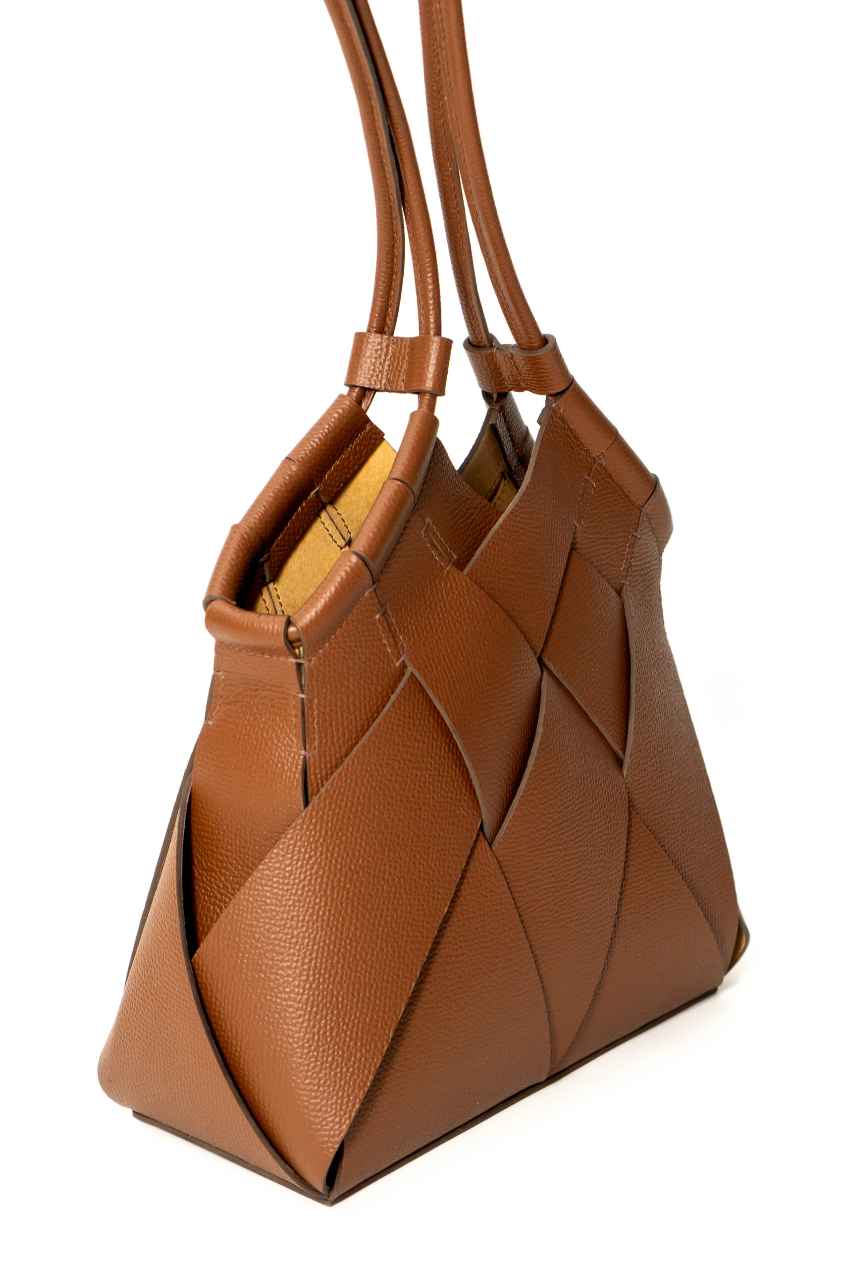 Выкройка сумки-корзинки Lola. Изделие выполнено на подкладке. Стильная кожаная сумка с плетеными стенками и двумя ручками, которые фиксируются стопорами. Внутри — съемный вкладыш.