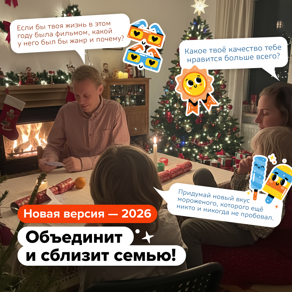 Сборник заданий, чтобы сблизить вашу семью и наполнить вечер радостью общения. Внутри — вопросы о самых ярких моментах уходящего года, достижениях и полезных привычках, которые продолжают «Новогодние семейные фанты».