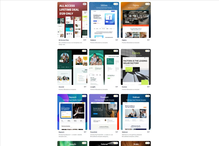 Bricksmade (работает с Bricks Builder) — это коллекция премиальных шаблонов и страниц, полностью нативных для Bricks Builder (то есть без сторонних плагинов), которые позволяют вебмастерам, агентствам и фрилансерам ускорить процесс создания сайтов и концентрироваться на логике и контенте проекта, а не на рутинной верстке и дизайне.